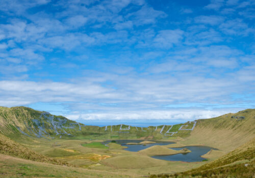 Depending on the conditions of the Atlantic, our day is dedicated to discovering the Island of Corvo with Carlos Mendes of Extreme Ocidente. Our boat ride takes us through the impressive coastline of Flores, showcasing jaw-dropping waterfalls and caves. There’s also a high likelihood of encountering dolphins and other whales during our journey. Once in Corvo we’ll get to a short ride to the Caldeira.
