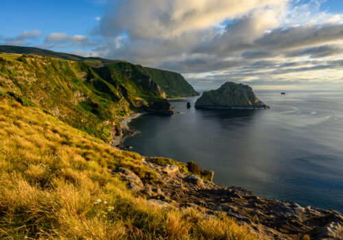 In the evening we head north, where we explore the rugged north coastline of Ponta Delgada, stopping at viewpoints along the way. The day concludes at the impressive Baía do Além, offering striking seascapes in its surroundings with Albarnaz lighthouse perched on the edge of the cliffs. Be prepared for the unexpected and embrace the dynamic beauty of Flores.