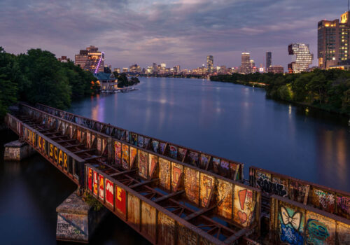 Boston and Cambridge are vibrant, colorful cities after dark. Despite the limitations of darkness there is still great detail and color to be captured through your lenses. Our walk will take us along the Charles River to the BU Footbridge. We will then photograph both the BU footbridge from the land, and also the Charles River from the footbridge, utilizing the evening light, civil twilight, and night time light.
