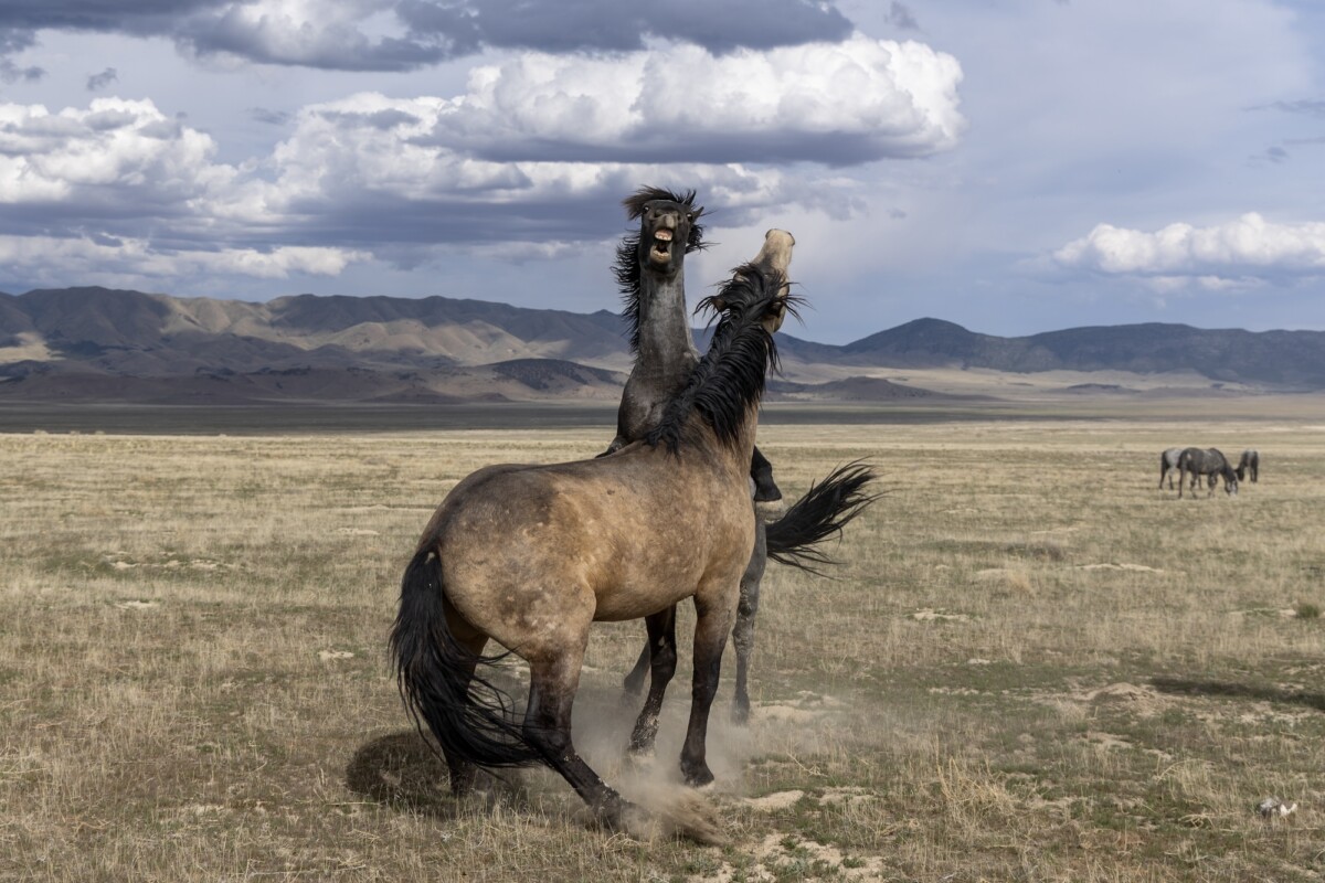 And of course, everyone hopes for action—stallions sparring, horses running, and those unpredictable bursts of energy when the herd shifts direction or tension rises. During the workshop, we also spend time reading behavior—understanding body language, herd dynamics, and learning how to anticipate movement before it happens. That knowledge becomes just as important as camera settings when photographing wild horses in action. We also work through technical skills like freezing motion, panning, and capturing decisive moments in fast-changing light.